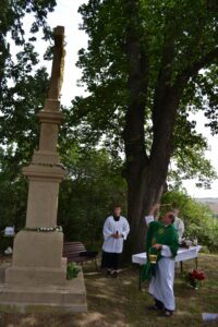 Děkujeme všem návštěvníkům, kteří se i přes nepříjemný vítr mše i vysvěcení zúčastnili. Až půjdete kolem, určitě se u kříže zastavte. Zahlédnete krásný lidský odkaz citové vazby a lásky ke krajině, k domovu.