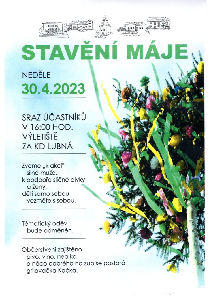 Naše obec se letos vůbec poprvé zapojila do celorepublikové akce „Ukliďme Česko“. Od pořadatelů zajistila pro dobrovolníky rukavice a pytle na odpad a 1.dubna se mohlo uklízet. V 9 hodin se účastníci sešli U Panenky v úžasném počtu 39 dobrovolníků, z čehož bylo 20 dětí. Rozdělili se do dvou skupin, a s nadšením se vydaly každá jedním směrem. Jedna skupina se vydala k přehradě, druhá na stranu opačnou, obě pak společně uklidily okolí kulturního domu. Dobrovolníci tak nashromáždili celkem 10 pytlů směsného odpadu. Děti obdržely diplom, jako poděkování si za odměnu opekly špekáčky. Nejlepší sběračkou byla vyhlášena Laura Bartolšicová, která i přes zasádrovanou ruku byla aktivní účastnicí tohoto úklidu.