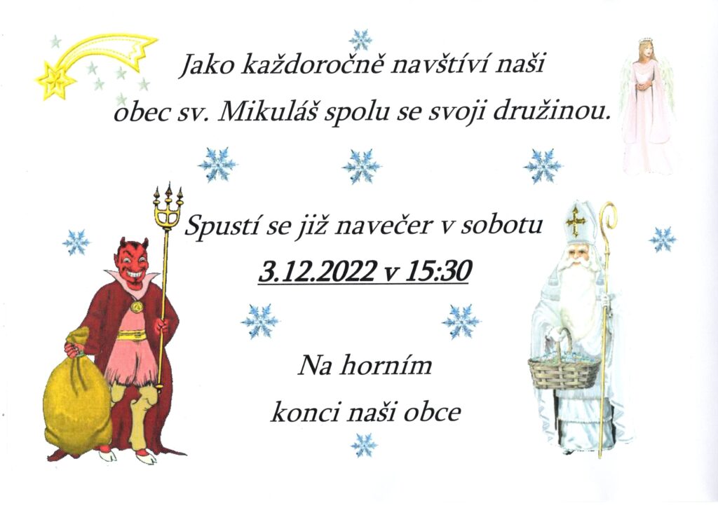 Žádáme občany, kteří využívají parkoviště u horní zastávky, aby ve dnech 1. a 2. 12.2022 v době od 8,00 do 15,00 hodin přeparkovaly svá vozidla tak, aby celé parkoviště zůstalo prázdné , z důvodu volného přístupu strojů a techniky k potoku a mostní konstrukci. Odborná firma zde bude v uvedené době provádět geologický průzkum pomocí vrtaných sond v souvislosti s připravovanou rekonstrukcí silnice v naší obci.