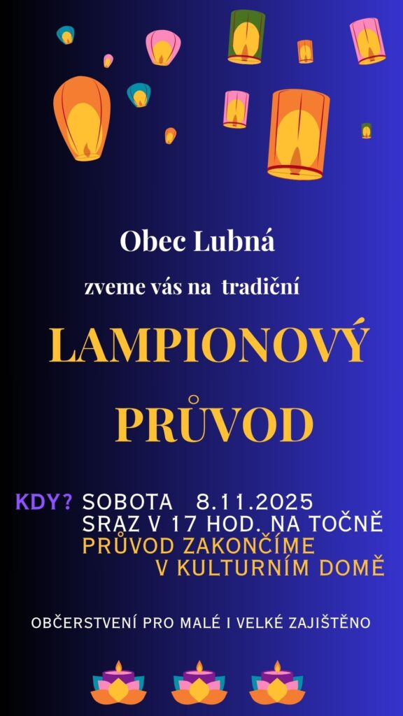 V sobotu 8.11.2025 se koná Lampionový průvod. Sraz je v 17 hod. na točně odkud se vydáme přes celou obec až do kulturního domu. Občerstvení zajištěno. Těšíme se, těšte se:-)!