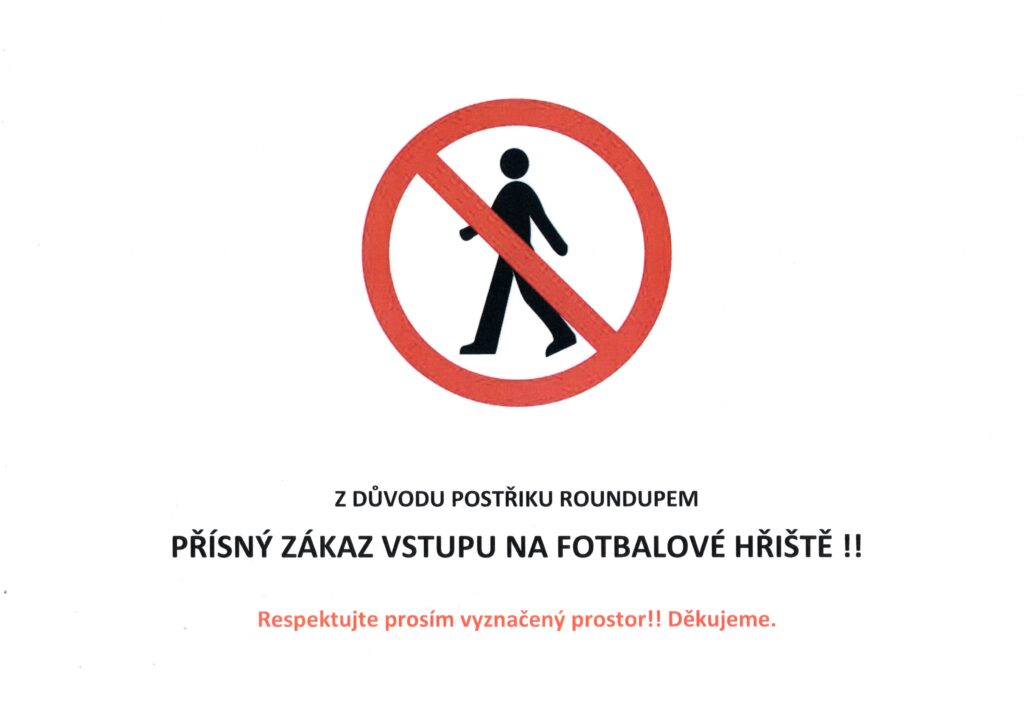 OZNÁMENÍ – Zákaz vstupu na fotbalové hřiště