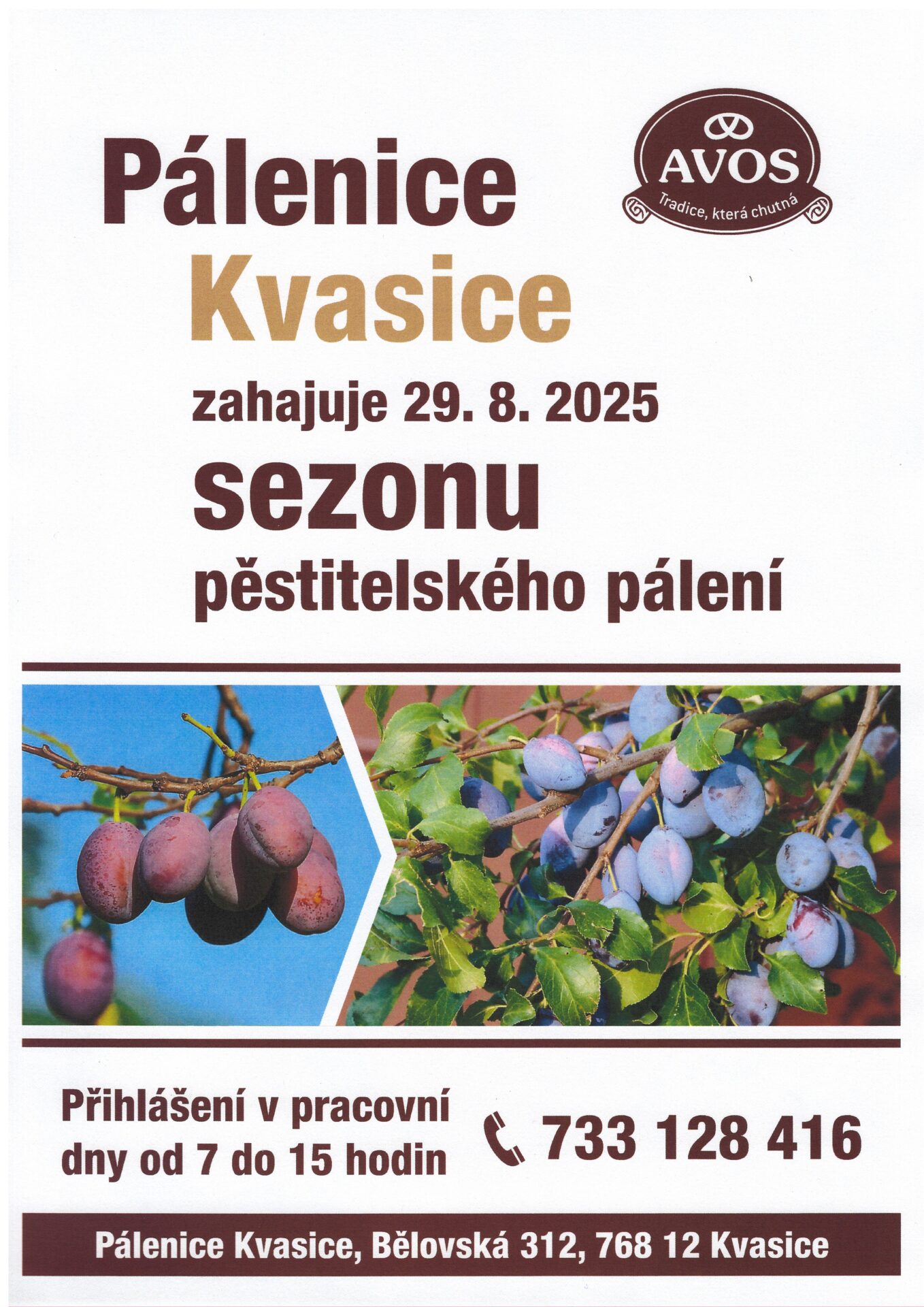 Pálenice Kvasice – zahájení pálení od 29.8.2025