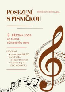 Srdečně zveme dříve narozené na tradiční Posezení s písničkou. Koná se již tuto sobotu 8. března od 15 hod. v kulturním domě.