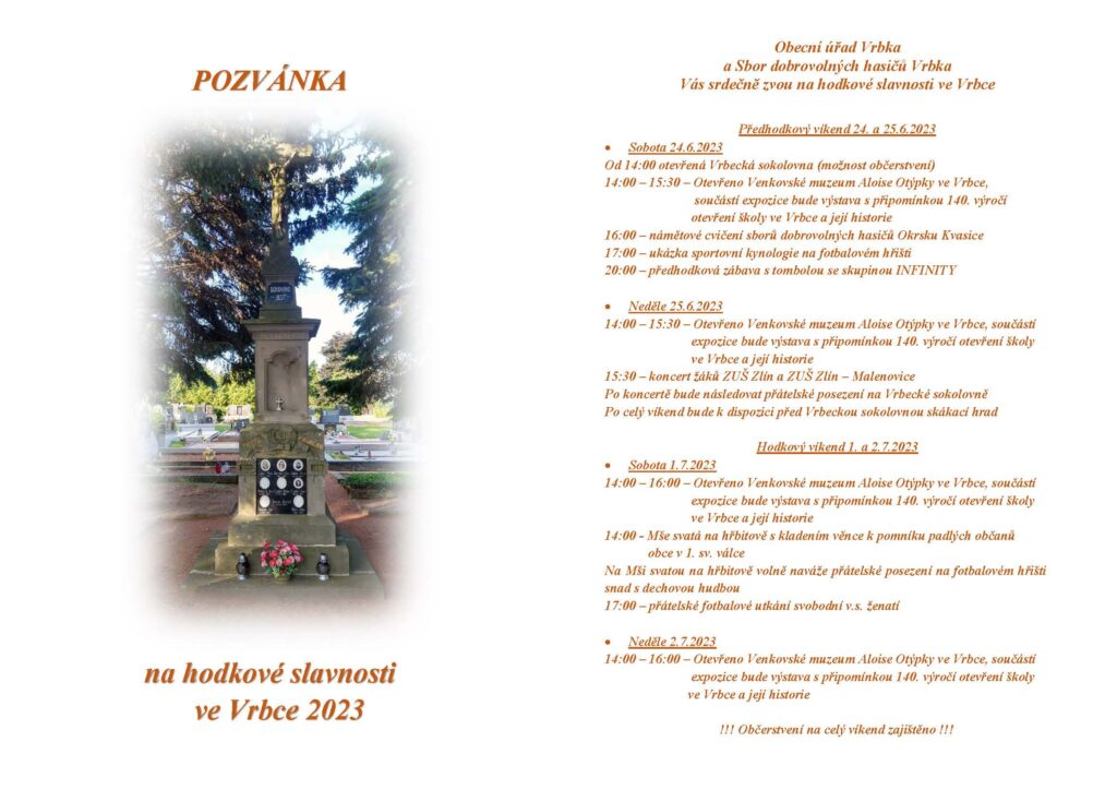 POZVÁNKA na Hodkové slavnosti ve Vrbce