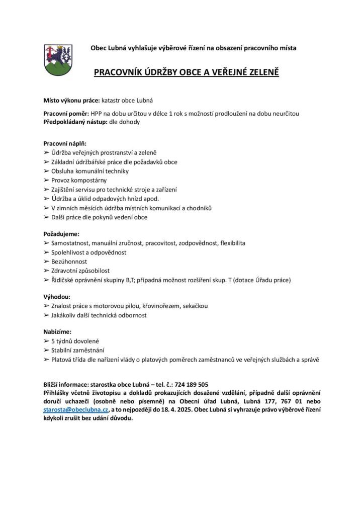 PRACOVNÍK ÚDRŽBY OBCE A VEŘEJNÉ ZELENĚ